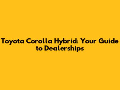 Toyota Corolla Hybrid: Your Guide To Dealerships
