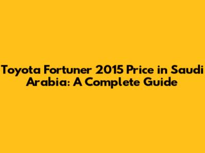 Toyota Fortuner 2015 Price In Saudi Arabia: A Complete Guide