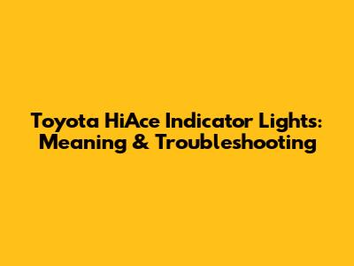 Toyota HiAce Indicator Lights: Meaning & Troubleshooting