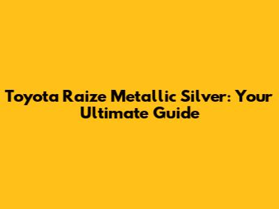 Toyota Raize Metallic Silver: Your Complete Guide