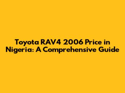 Hey guys! Are you thinking about getting a Toyota RAV4 2006 in Nigeria? You've landed in the right spot! This article is your go-to resource for everything you need to know about the price, specs, and availability of this popular SUV in the Nigerian market. We'll dive deep into what makes the RAV4 2006 a solid choice, factors influencing its price, and where you can snag one for yourself. So, buckle up and let’s get started!