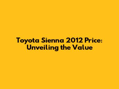 Toyota Sienna 2012 Price: What You Need To Know