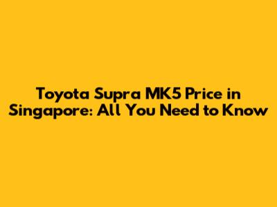 Toyota Supra MK5 Price In Singapore: All You Need To Know
