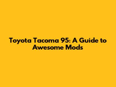 Hey gearheads! Ever wanted to transform your Toyota Tacoma '95 into something truly unique? You're in luck! This guide is all about diving deep into the world of Toyota Tacoma 95 modifications. We're talking everything from spicing up the exterior with a fresh paint job to cranking up the performance with engine tweaks. Whether you're a seasoned mechanic or a weekend warrior, there's something here for everyone. Let's get down to business and explore how you can customize your '95 Tacoma to match your style and needs. We'll be covering the best modifications, how to do them, and what to keep in mind to make your truck the envy of all your friends. Get ready to roll up your sleeves and get your hands dirty, because we're about to make some serious improvements to your ride!