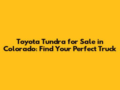 Where to Find Toyota Tundra for Sale in Colorado