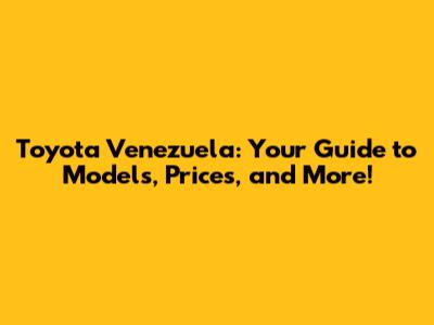 Toyota Venezuela: Models, Prices, And More!