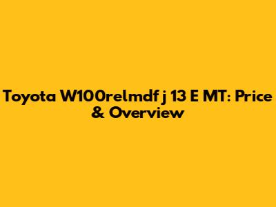 • Affordability: The W100relmdfj 13 E MT is generally one of the more affordable options in the Toyota lineup, making it accessible to a wider range of buyers.