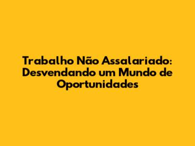 O Mercado de Trabalho Não Assalariado: Tendências e Oportunidades
