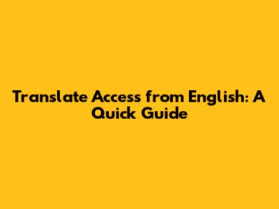 Translate 'Access' From English: A Quick Guide
