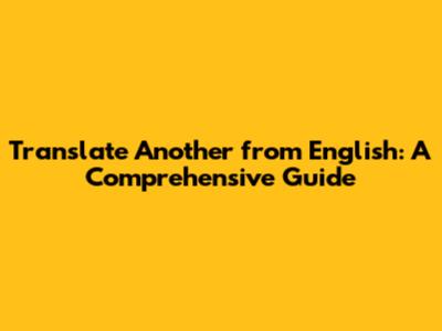 Translate Another From English: A Comprehensive Guide