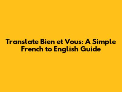 Translate Bien Et Vous: A Simple French To English Guide