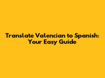 Translate Valencian To Spanish: Your Easy Guide