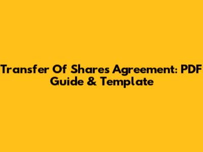 Transfer Of Shares Agreement: PDF Guide & Template