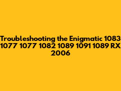 First things first, let's break down this mysterious sequence. The initial numbers, "1083 1077 1077 1082 1089 1091 1089," seem like a jumble at first glance. It could potentially be a part number, a serial number, or even a model identifier for a specific device or component. The "RX 2006" part suggests a model or series named RX that was released around the year 2006. This is a crucial clue that helps us narrow down our search. To truly understand what we're dealing with, we need to consider the context in which this sequence appears. Where did you encounter this code? Was it on a piece of equipment, a document, or perhaps an error message? Knowing the context is like having the first piece of a puzzle; it guides us in the right direction.