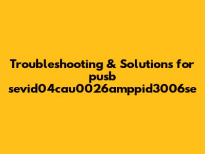 Troubleshooting & Solutions For Pusb Sevid04cau0026amppid3006se