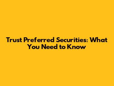 Trust Preferred Securities: What You Need To Know