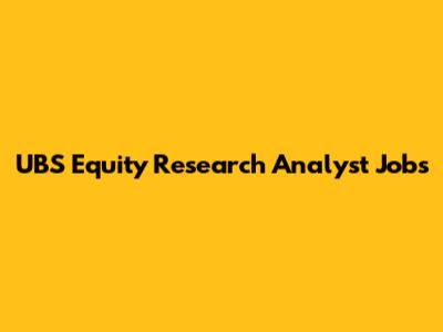 UBS Equity Research Analyst Jobs: Your Path To Finance