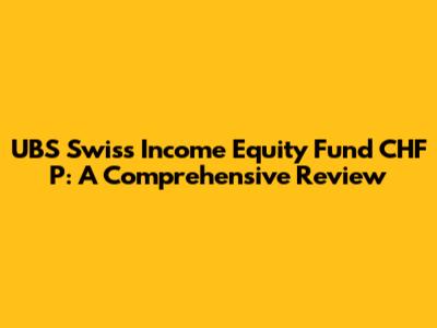 Hey guys! Let's dive into the UBS Swiss Income Equity Fund CHF P. If you're looking for a fund that blends Swiss equities with a focus on income, this could be right up your alley. In this article, we'll break down its objectives, performance, fees, and overall suitability for your investment portfolio. We'll keep it casual and straightforward, so you can make an informed decision without getting bogged down in complicated jargon.