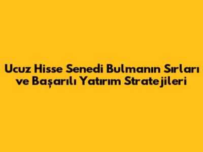 Ucuz Hisse Senedi Bulmanın Sırları Ve Başarılı Yatırım Stratejileri