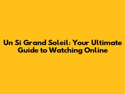 Un Si Grand Soleil: Your Guide To Watching Online