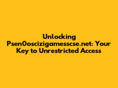 Unblocking Psen0oscizigamesscse.net: Your Guide To Access