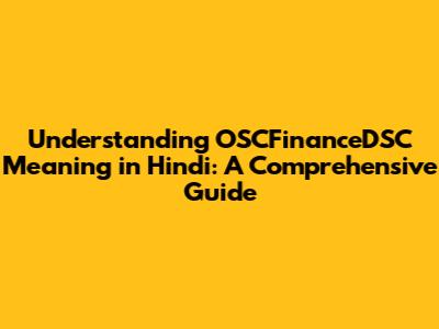 Understanding OSCFinanceDSC Meaning In Hindi: A Comprehensive Guide