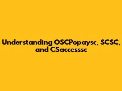 Understanding OSCPopaysc, SCSC, And CSaccesssc