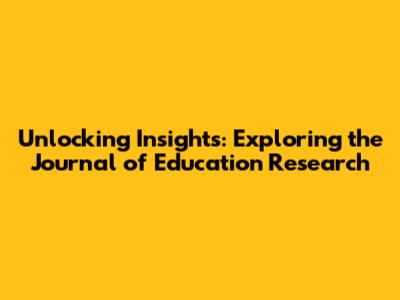 Unlocking Insights: Exploring The Journal Of Education Research