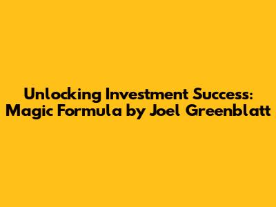 Hey guys! Ever felt lost in the world of investing, like you're navigating a maze blindfolded? Don't worry, you're not alone! Many of us face the same challenges. But what if there was a simple yet powerful strategy to help you make informed decisions and potentially boost your portfolio? Enter the Magic Formula, a groundbreaking investment approach developed by the legendary Joel Greenblatt. This article will explore the magic formula, breaking down its core concepts, how it works, and its potential benefits. So, buckle up, because we're about to embark on a journey that could transform the way you think about investing! Let's dive in and uncover the secrets behind Greenblatt's ingenious strategy!