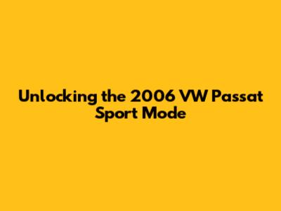 Unlocking The 2006 VW Passat Sport Mode