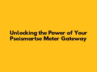 Unlocking The Power Of Your Pseismartse Meter Gateway
