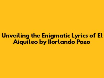 Hey everyone! Ever found yourself completely captivated by a song? That's definitely how I felt the first time I heard 'El Aiquileo' by IIorlando Pozo. The rhythm gets you, the melody is haunting, and then there are the lyrics. Those lyrics, guys, they're like a hidden treasure, full of stories, emotions, and a whole lot of cultural richness. So, if you're like me and want to dig deeper into the meaning behind this incredible song, you're in the right place. We're going to explore IIorlando Pozo's 'El Aiquileo' lyrics, dissecting every verse, understanding the context, and uncovering the magic woven into each word. Trust me; it's going to be a fun journey of discovery.