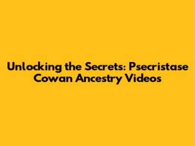 Unlocking The Secrets: Psecristase Cowan Ancestry Videos