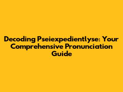 Unlocking The Sounds: A Guide To Pronouncing 'Pseiexpedientlyse'