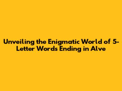 Unveiling the 5-Letter Wonders: Words That End in 'Alve'