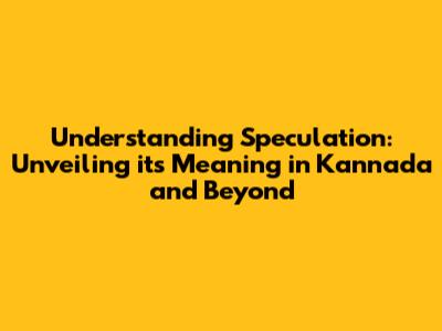 Unpacking 'Speculation': Meaning In Kannada & Beyond