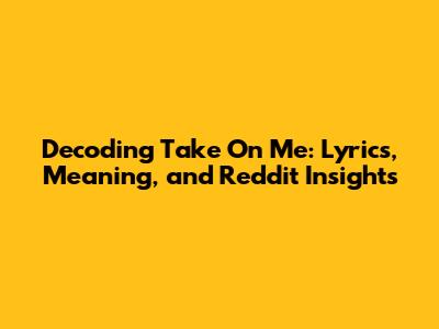 Unpacking 'Take On Me': Lyrics, Meaning & Reddit Buzz