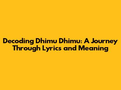 Unpacking The Heart Of 'Dhimu Dhimu': Lyrics, Meaning & Cultural Significance