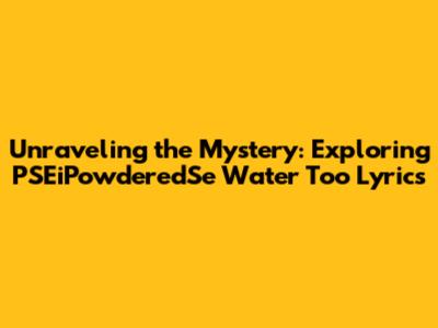 Unraveling The Mystery: Exploring PSEiPowderedSe Water Too Lyrics