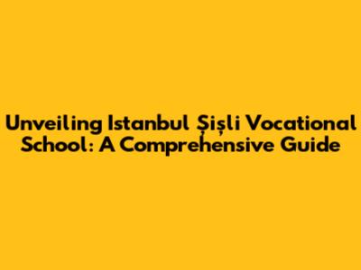 Unveiling Istanbul Şişli Vocational School: A Comprehensive Guide