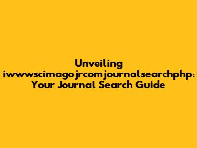 Unveiling Iwwwscimagojrcomjournalsearchphp: Your Journal Search Guide