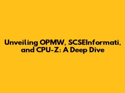 Unveiling OPMW, SCSEInformati, And CPU-Z: A Deep Dive