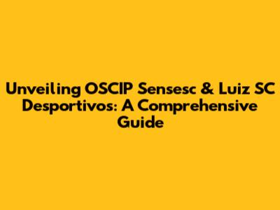 Unveiling OSCIP Sensesc & Luiz SC Desportivos: A Comprehensive Guide