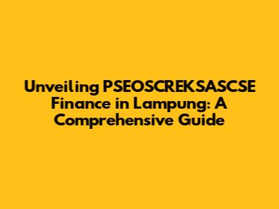 Unveiling PSEOSCREKSASCSE Finance In Lampung: A Comprehensive Guide