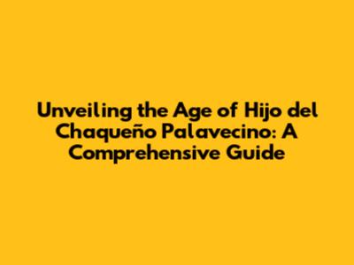 Unveiling The Age Of Hijo Del Chaqueño Palavecino: A Comprehensive Guide