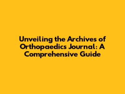 Unveiling The Archives Of Orthopaedics Journal: A Comprehensive Guide