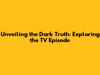 Unveiling The Dark Truth: Exploring The TV Episode