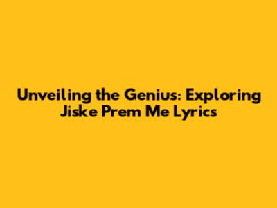 Unveiling The Genius: Exploring 'Jiske Prem Me' Lyrics