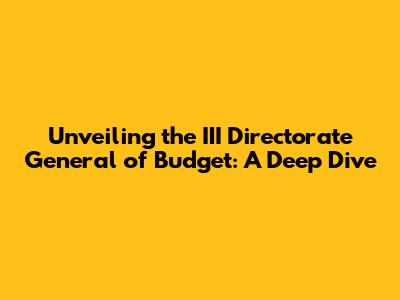 Unveiling The III Directorate General Of Budget: A Deep Dive