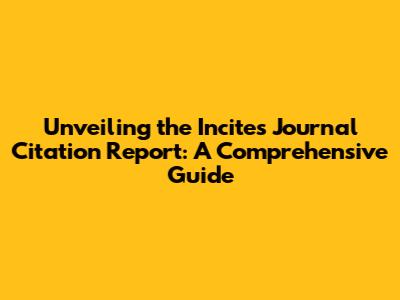 Unveiling The Incites Journal Citation Report: A Comprehensive Guide